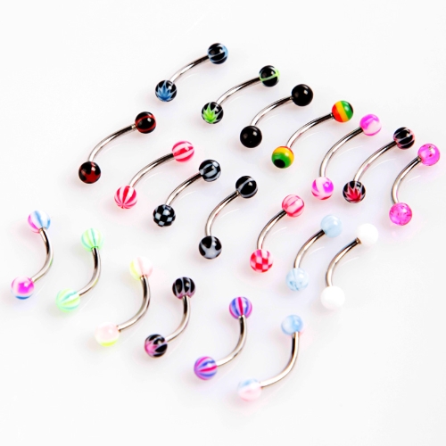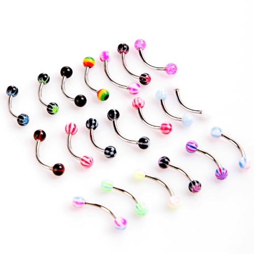 20pcs Colorful Stainless Steel Ball Barbell Curved Eyebrow Rings Bars Tragus Piercing