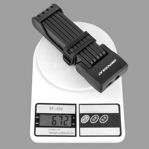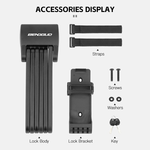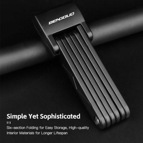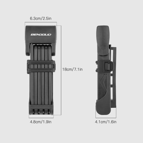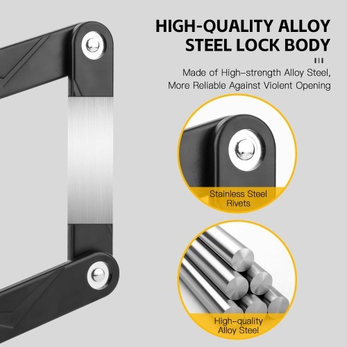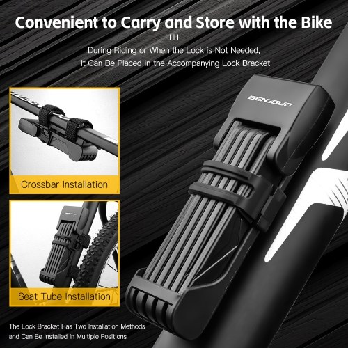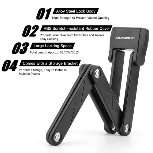 Portable folding bike lock, crafted from sturdy alloy steel for ultimate security. Features ABS scratch-resistant cover, extended reach, & built-in mount for hassle-free storage. Perfect for bikes, e-bikes, & motorcycles.