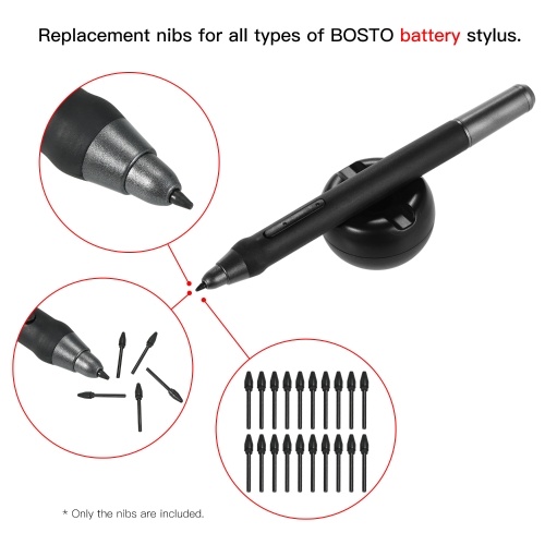 It can be compatible with all BOSTO graphics monitors drawing tablets battery-free stylus. There are 20 nibs per pack, enough to last for a while. very nice!