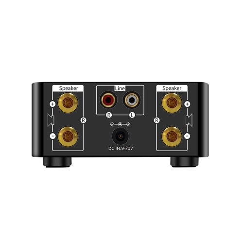 It is a constant resistance amplifier, supporting 4/ 6/ 8/ 16 ohms passive speakers; cannot be connected to active speakers and passive subwoofer; 4 pillars in the back are output interfaces, which cannot be connected to 3.5mm headphone plug or lotus plug.