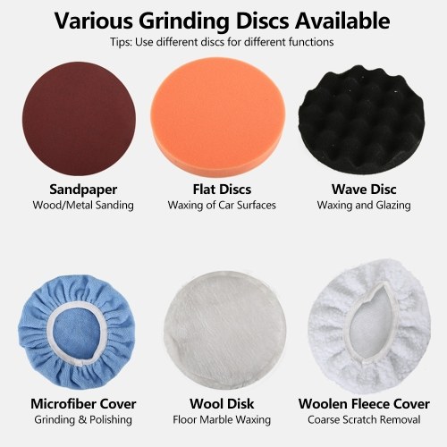 【Wide Application】Buffer polisher comes with sandpapers, foam pads for waxing, wool polishing pads You can use soft or hard foam pads to finish different application. This rotary polisher is ideal for polishing, sanding, waxing, sealing glaze, removing swirls, shallow scratches, excess wax oil and defects from vehicles. You can also use it on furniture, ceramic, wood, aluminum, steel, tiles, plastic and more.