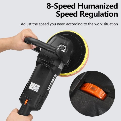 【Variable Speed Control】8 variable speed control dial allows you to change the car polisher speed according to different applications and materials. Easily adjust your speed without stopping from 600-3600 RPM. You can use a higher setting on harder materials and lower setting on softer materials.