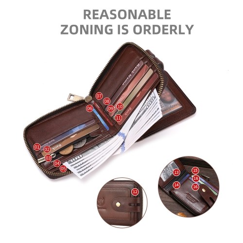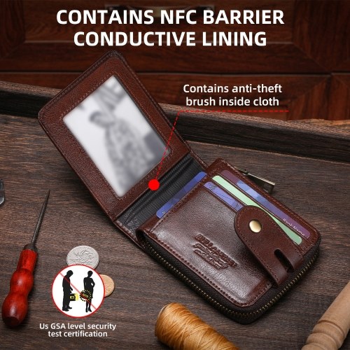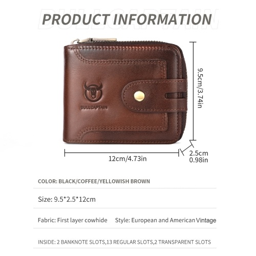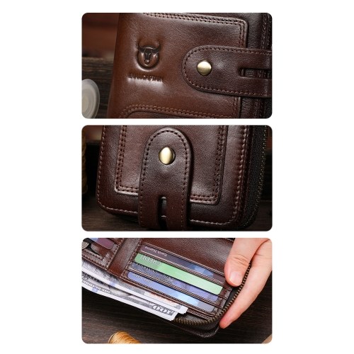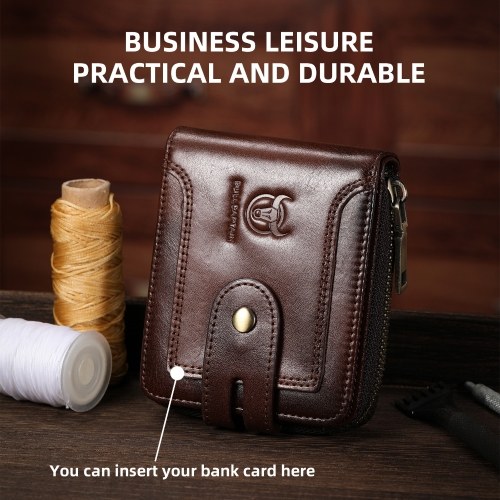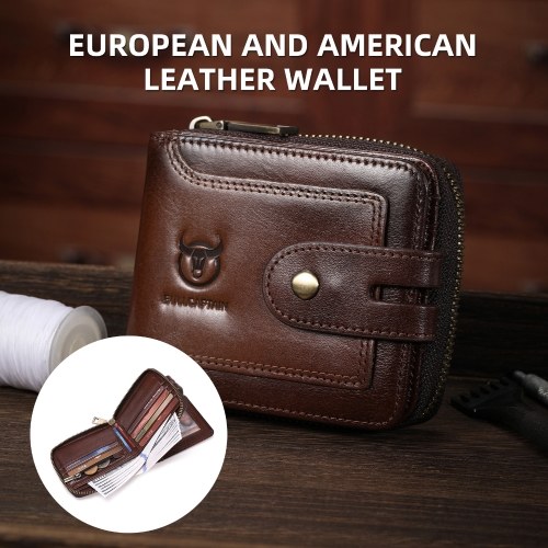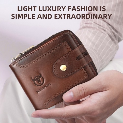 Crafted from premium top-grain leather, this stylish bifold wallet for men features RFID protection, ample card slots, & a secure zip for cash. Perfect for daily use.