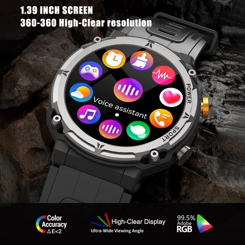 Immerse yourself in the brilliance of the 1.39" high-clear display. Comes with BT5.2, and it seamlessly pairs with your smartphone, allowing you to receive call and message notifications directly on your wrist. The built-in AI Voice assistant lets you manage tasks, make inquiries, and navigate your day using just your voice. Compatible with Android 6.0/iOS 9.0 and above, it ensures compatibility with your devices. Continuously monitors heart rate, blood pressure, blood oxygen, and sleep, comprehensively focusing on your physical condition to help you maintain a healthy state.