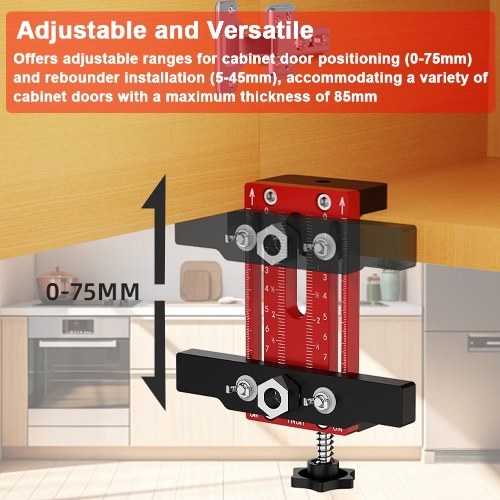 【Adjustable and Versatile】: Offers adjustable ranges for cabinet door positioning (0-75mm) and rebounder installation (5-45mm), accommodating a variety of cabinet doors with a maximum thickness of 85mm.