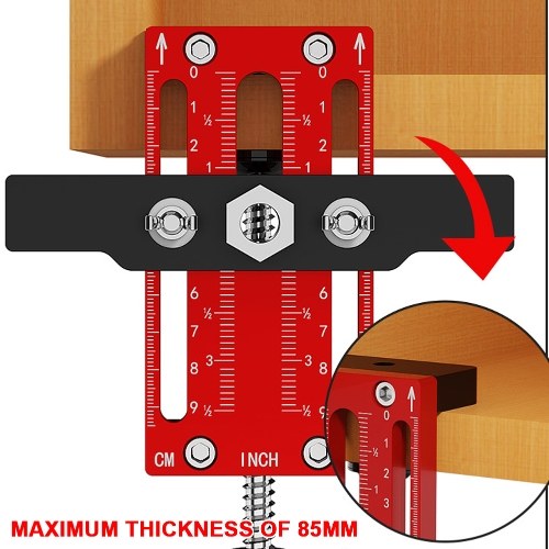 Combines cabinet door positioning and rebounder installation into one tool, simplifying the installation process and providing a more simple installation for cabinet door adjustments. Offers adjustable ranges for cabinet door positioning (0-75mm) and rebounder installation (5-45mm), accommodating a variety of cabinet door with the thicknesses of maximum 85mm. Features dual-sided calibration marks for accurate positioning of the rebounder installation holes, along with a smooth round edged and protective sponge to avert damage to the cabinet doors during installation.