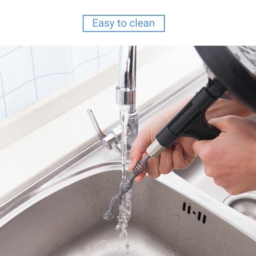 I can't give this item enough praise. It is a quality, sturdy product and extremely easy to use. I used it with a power drill; it is a little heavy and using this manually would have been too much for me. With the drill, you get great leverage and it is a lot less tedious. In about 10 to 12 minutes I was done and the sink drained perfectly for the first time in years. I took the unit outside and extended the snake out and hosed it off. Do yourself a favor - if you're in the market for a product like this, spend a little extra and buy a quality item like this Rigid.