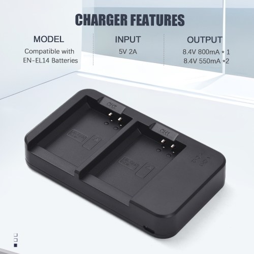 【Camera Battery & Charger Kit】Including a 2-slot battery charger, 2pcs batteries and one USB charging cable, this camera battery & charger kit is a value pack.