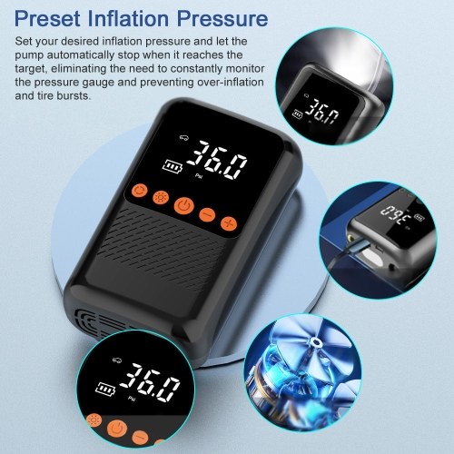 Preset Inflation Pressure: Set your desired inflation pressure and let the pump automatically stop when it reaches the target, eliminating the need to constantly monitor the pressure gauge and preventing over-inflation and tire bursts.