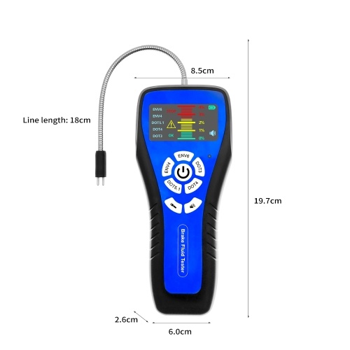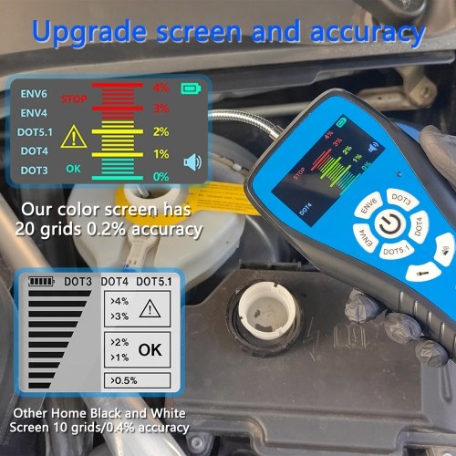 High Precision Testing: The brake fluid moisture tester offers high precision testing with an accuracy of up to 0.2%. With 21 levels of test results displayed on a color LCD screen, users can get a comprehensive and precise understanding of their brake fluid condition.