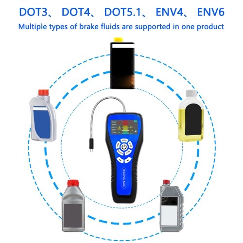 Wide Compatibility: The automotive brake fluid tester is capable of detecting five types of brake fluids: DOT3, DOT4, DOT5.1, ENV4, and ENV6. This broad compatibility makes it an essential tool for most vehicle owners and mechanics.