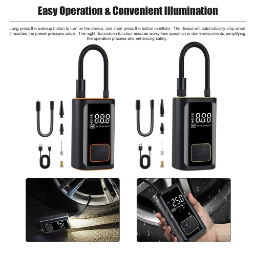 【Easy Operation & Convenient Illumination】: Long press the wakeup button to turn on the device, and short press the button to inflate. The device will automatically stop when it reaches the preset pressure value. The night illumination function ensures worry-free operation in dim environments, simplifying the operation process and enhancing safety.