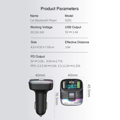 Wide Compatibility and Stylish Design: Compatible with most mainstream car models (12-24V), including sedans, trucks, SUVs, and more, the MP3 player is designed to meet the needs of a wide ranges of users. The addition of seven-color lights creates a cool and vibrant atmospheres, enhancing your driving experience.