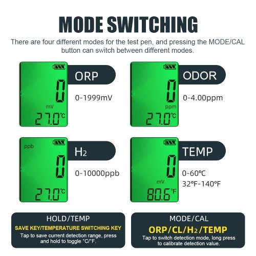 There are four different modes for the test pen, and pressing the MODE/CAL button can switch between different modes.