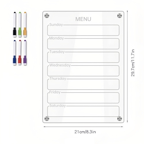 【Magnetic Refrigerator Planner Set】Acrylic refrigerator weekly calendar set are specially designed for you to plan your daily life and keep your life organized. Panel measures 8.27x11.7in, perfect for your refrigerator.