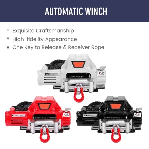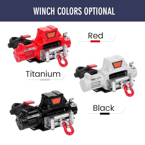 This electric RC winch is perfect for 1/10 Traxxas HSP Redcat RC4WD Tamiya Axial SCX10 D90 HPI RC Car. The winch highly simulated the real one that enables you to wind up or out the roped by pressing a button, allowing you to tow objects or another RC car sunk in the mud, which makes your RC car look cool and fascinating.
