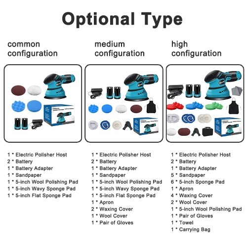 This cordless electric polisher is designed for cleaning, polishing, and waxing. It can bring back the gloss for the surface and remove surface defects, such as scratches. It can also perfect existing polishing defects. After repairing, paint surface mirror smoothing effects can be improved. Features an ergonomic handle design for a more comfortable grip, realizing low noise and low vibrations at the same time. Self-adhesive tray design for easy replacement of polishing disc. Perfect for wood sanding, car polishing, metal rust removal, furniture polishing, paint polishing, etc.