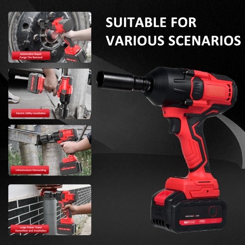 【Upgraded Brushless Powerful Motor】Compared with brushed motors, brushless motor have strength in better performance and longer durability, with less noise and no sparks. Power impact wrench has a high torque of up to 600N.m and the max speed is 2100RPM, helping you easily loosen or tighten various types of bolts or nuts, including nuts or screws for truck, automobile, scaffolding, etc.