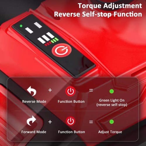 【Forward & Reverse】Forward & reverse, control in your hands, whether you're left-handed or right-handed. In the reverse mode, you can choose auto-brake mode to prevent the screws and nuts from falling out.