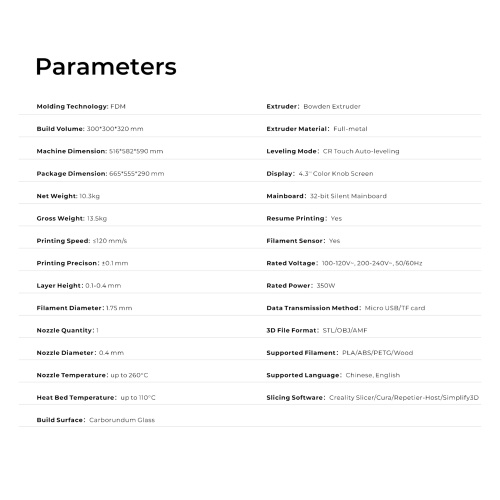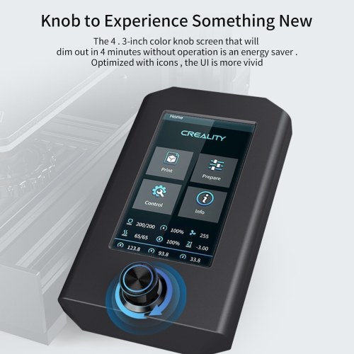 ▶ More Functions: The 4.3-inch color knob screen has icons for better understanding; It will dim out automatically to save energy. Full-metal Bowden extruder is durable and has greater extrusion force. Assisted by gears, the filament is easy to load and withdraw.