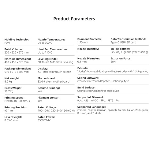 Powerful Function: Design with platform handle to pull out under high temperature, and LED light for dark environment. 220 x 220 x 270mm print size, compatible with various 1.75mm printing filaments. Widely used in home decoration, toys, anime handicrafts, education, medical, etc.
