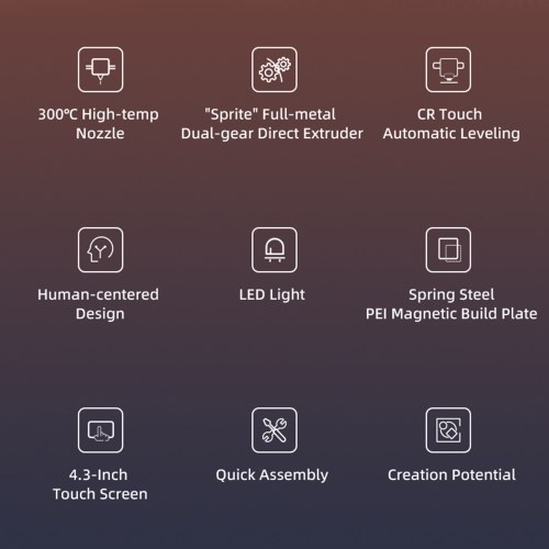 Innovated Direct Extruder: “Sprite” full-metal dual-gear direct extruder with an extrusion force of 80N is durable and enables smooth feeding. It supports a wide range of filaments and performs well even when printing with flexible filaments, such as TPU.