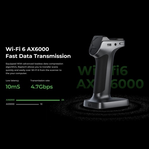 【Portable Wireless Scanner】RaptorX features a wireless handle seamless data transmission, redefining portability in blue laser 3D scanning. With 2pcs 5000mAh rechargeable battery, charges to 80% in just 1.5 hours, up to 4hrs scanning after one full charge, making outdoor scanning more convenient and worry-free.