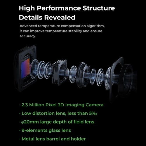 【Anti-shake, Smooth and Efficient Scanning】 Equipped with One-Shot 3D imaging technology, it is naturally stabilized and less likely to tracking loss. Fast backtracking speed ensures smoother handheld scanning. At the same time, the lens has an autofocus feature to make sure that you don't have a bad scanning experience such as lost frames or defocus during scanning.