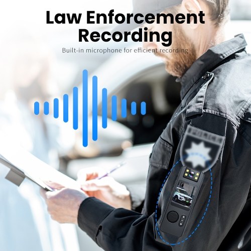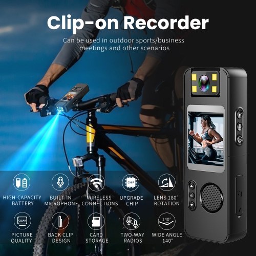 Body Camera with Audio & Video: Featuring a 180° rotatable lens, the body camera can record 1080P clear videos, and work as a audio recorder separately. Supporting loop recording, it is suitable for law enforcement, delivery job, traveling, camping, cycling, etc.