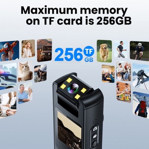 Body Camera with Audio & Video: Featuring a 180° rotatable lens, the body camera can record 1080P clear videos, and work as a audio recorder separately. Supporting loop recording, it is suitable for law enforcement, delivery job, traveling, camping, cycling, etc.