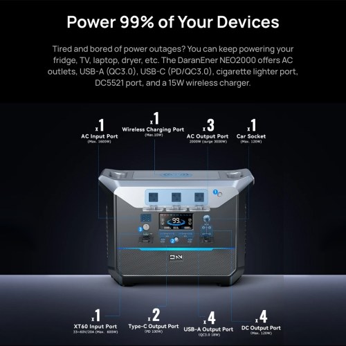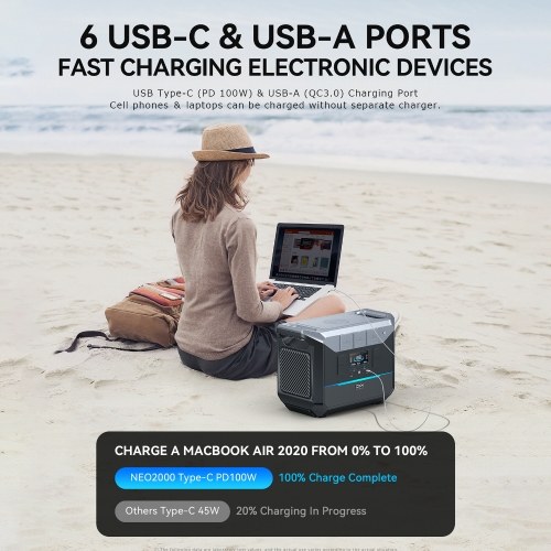 A large power station, its fast charging function is amazing. It can be fully charged in 1.8 hours, which is very convenient. The UPS function is a nice addition. I never have to worry about my devices losing power during a power outage. If you're looking for a quality power bank and don't mind the higher price tag, the NEO2000 is a solid choice.
