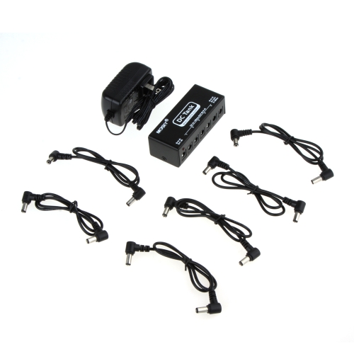 This is a great compact power supply. Just hooked it up to a large pedal board, it powering 7- 9volt and 1 - 18v pedals, with 3 other units on the board using their own power supplies, and no there is noise whatsoever. I chose the Mosky over the competition for 2 reasons: it had the lowest cost and there are air vents on each side of the case. It does not offer the single 500ma outlet as some do, all are 100ma, but that was not an issue for me. The 18" cables are good quality and its wall-wart power plug is not overly large and has a decent length cable.