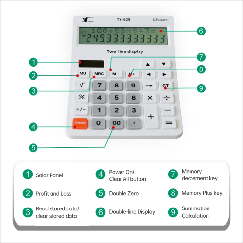 [MULTIFUNCTION CALCULATOR] The TY-628 is more than just a calculator. It features multiple functions such as recall calculation, percentage operation, memory subtraction key, and memory addition key. It's a versatile tool that caters to various mathematical needs.
