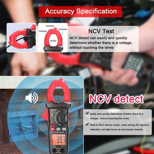 【NCV Test】: NCV detect can easily and quickly determine whether there is a voltage, without touching the wires. Built-in NCV sensor probe, when strong AC signal is detected, red light turns on and buzzer sounds.
