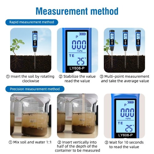 Highly Sensitive Probe: The high-sensitivity probe allows for precise measurements of soil nutrients (Phosphorus), ensuring that you can detect even subtle changes in soil composition. This feature is essential for monitoring the health of your plants over time.