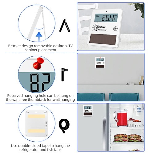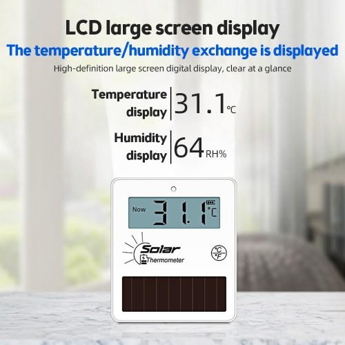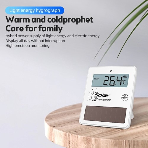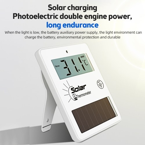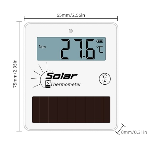 【Solar-Powered and Battery Backup】 - This indoor room thermometer is equipped with cutting-edge solar-powered technology, allowing it to harness energy from both natural and artificial light sources. With its built-in lithium battery, you won't have to worry about interruptions in power supply. Whether you use it in your home or office, this thermometer will reliably operate without the need for frequent battery replacements.