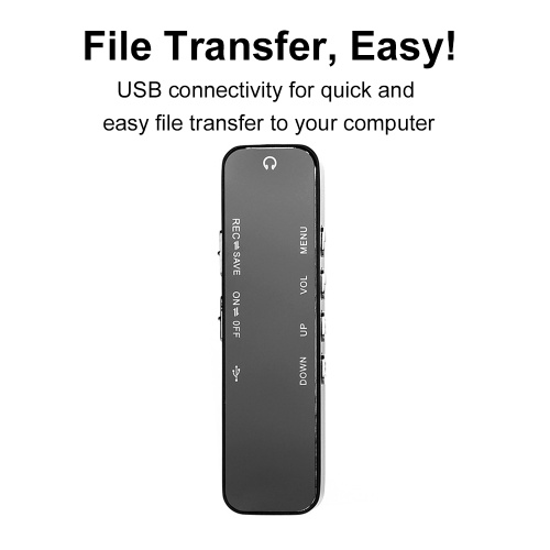 Push to record and down to save, our voice recorder offers a refreshingly simple and intuitive operation. No complex setup is needed – just push the button and start capturing your ideas effortlessly. Connect the recorder to your computer's USB port with the USB cable to transfer recording files and charge the recorder. It's compatible with most computers and offers fast file transfer. The digital voice recorder is small and lightweight, can be carried anywhere, and a key bag, wallet, and pocket can be loaded. Suitable for lectures, meetings, interviews, business negotiations, and more situations.