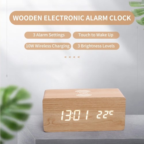 This Digital Wooden Alarm Clock enables you to set up to 3 alarms and set when it goes off --- Monday to Friday or only Saturday to Sunday. And it supports 10W wireless charging for your mobile phone and offers 2 displaying modes and 3 brightness levels. Besides, you can adjust 12/24H format.