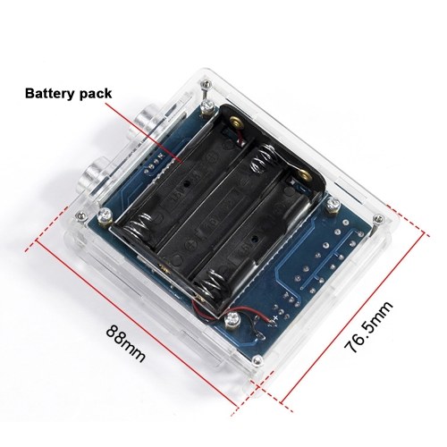 It consists of a special circuit board, STC microcontroller, digital tube, high-precise distance measuring module, buzzer, and other components, no programming is required, can be used by simply plugging into the powersupply. Built-in high-precise distance measurement probe, stable distance measurement, measuring distance up to 4 meters. Real-time display of the current distance to the obstacle, and with buzzer alarm function, it can be used as the reverse radars of the car, and the alarm distance can be set by the buttons, applicable to a variety of scenarios.