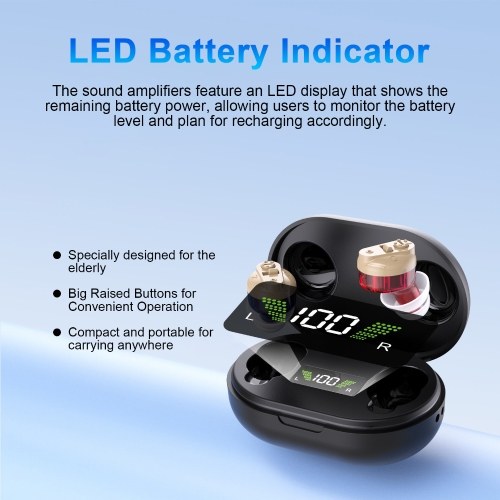 LED Battery Indicator: The sound amplifiers feature an LED display that shows the remaining battery power, allowing users to monitor the battery level and plan for recharging accordingly.