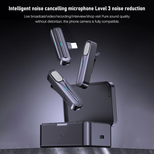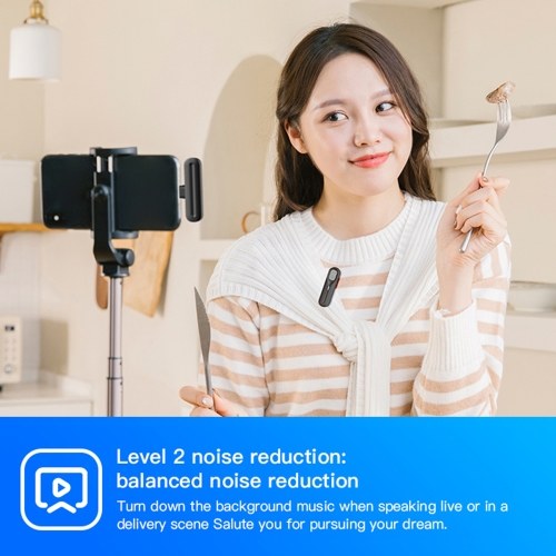 【Crystal Clear Audio】Equipped with 48kHz HD audio when noise cancellation is activated, the wireless lavalier microphone system guarantees your audio to be of the highest quality, free from any background noise, and crystal clear.