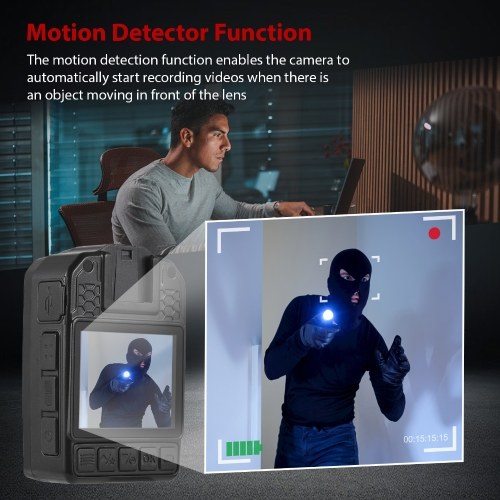 【Night Vision & Motion Detection】Equipped with IR night vision lights, this body cam can record clear videos even in low-light or nighttime conditions. And the motion detection function enables the camera to automatically start recording videos when there is an object moving in front of the lens.