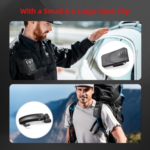 【Convenient Back Clip】Comes with a small and a large back clip for easily attaching the body cam to clothing pockets or backpack strap, offering versatile mounting options for hands-free recording in various scenarios.