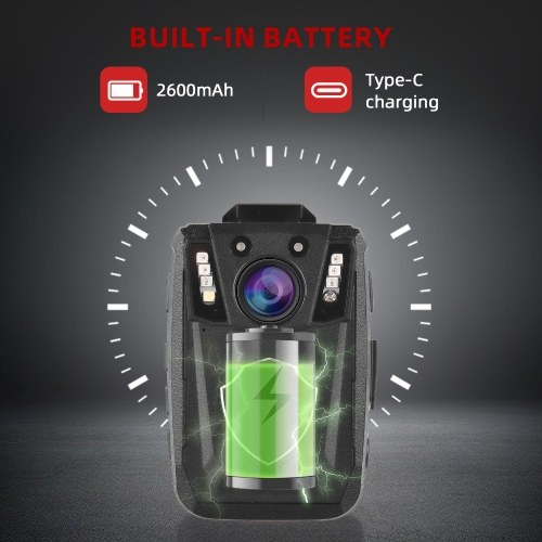 【Long-lasting Battery】The body cam has a built-in 2600mAh rechargeable battery that supports up to 8H long recording time. The included Type-C charging cable enables convenient recharging for uninterrupted use.