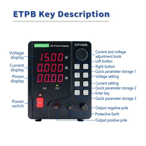 Display Mode: LED digital display, 4-digit digital voltage, current and power display.