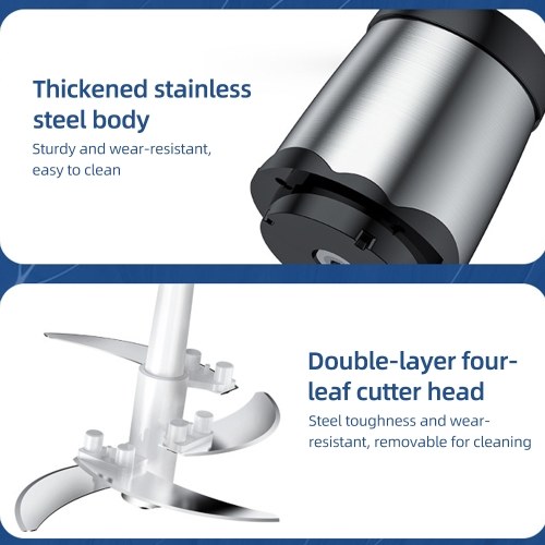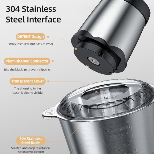 1. This electric meat grinder adopts pure copper motor, rotor copper wire, stator copper clad aluminum wire, each time can chop, mix, pound into mud, mix, chop to perfect texture. With this blender, it's easier than ever to prepare delicious meals for loved ones.