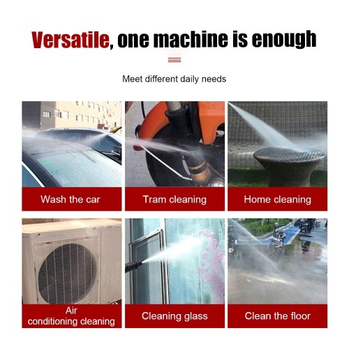 【Versatile Cleaning】: Equipped with a 3000W high-power cleaning pump, this pressure washer is a versatile machine that can handle different cleaning jobs effectively. Whether you need to remove dirt from your car, clean your air conditioner, or wash your windows, this portable pressure washer can get the job done efficiently.