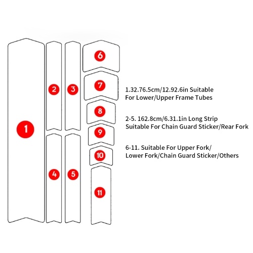 DIY Use: Can be applied to the down tube, top tube, and rear lower fork.