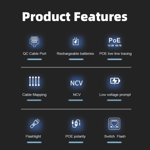 【Energy Saving and Humanized Design】: This product is eco-friendly in design and powered by a rechargeable lithium battery. It features a practical flashlight for low-light environments and an automatic shutdown for energy-saving, extending battery life. The switch port flashing function enhances line search, improving work efficiency.