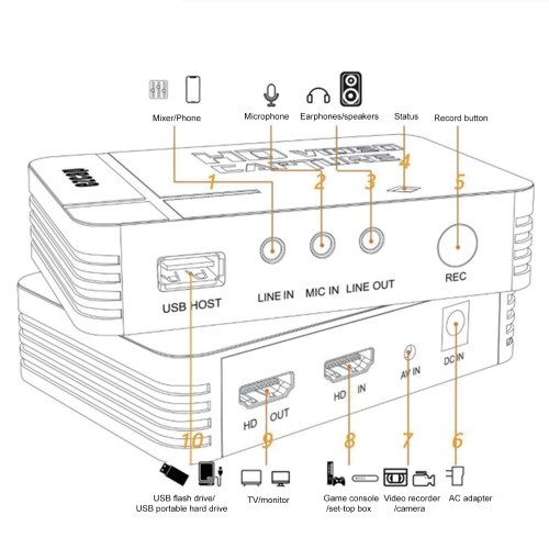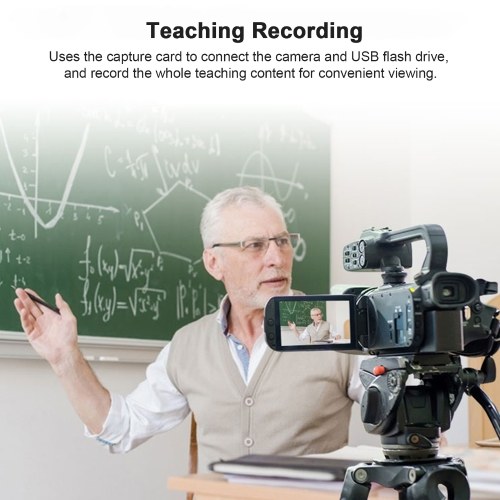 The USB2.0 capture card can record 1080P audio and video and save it in a USB flash drive.